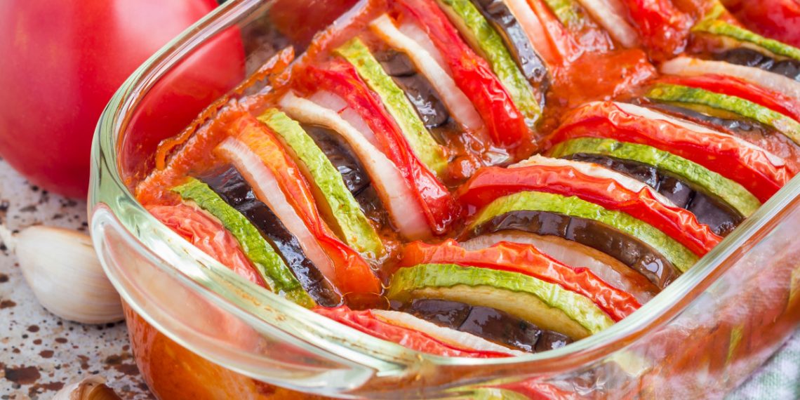 - Prenderai un refrattario dai bordi alti, lo ungerai con olio d’oliva e inizierai a mettere le fette alternando ogni verdura, a spirale dall’esterno verso l’interno, l’idea è di riempire l’intero contenitore disponendo le verdure in verticale. Quindi, metterai sopra una miscela di olio con le erbe aromatiche che hai scelto, il sale e l’aglio, quando innaffierai tutto sopra, porterai il contenitore in forno fino a quando le verdure saranno bianche, il che può essere di circa 40 minuti.