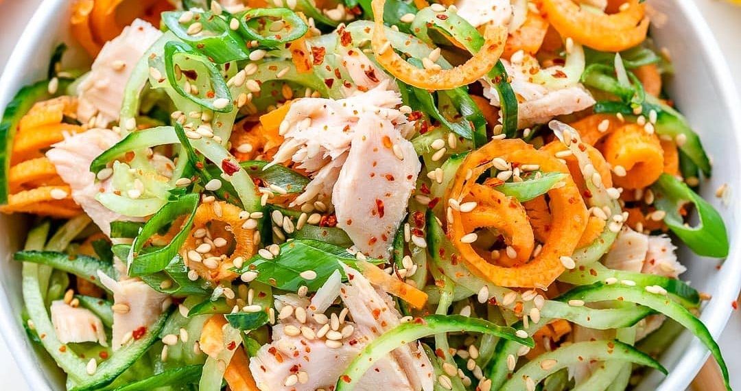 Questa è un’idea di insalata semplice, gustosa e nutriente per 2 persone. Ricorda che se non hai uno spirilizer, prova a passare un pelapatate sul cibo per creare dei nastri sottili.