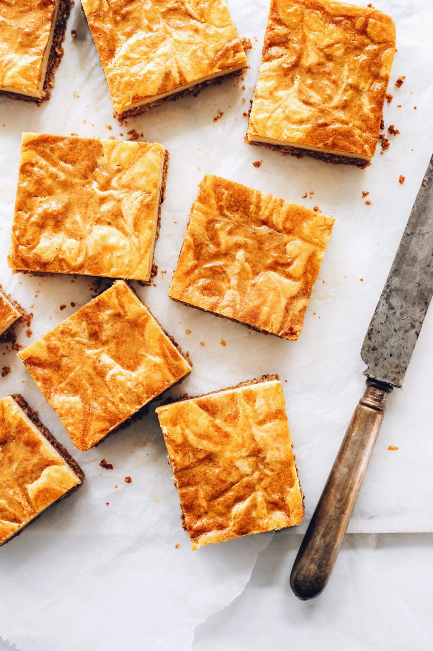 Barrette di cheesecake alla zucca con vortice (Vegane + Senza glutine)