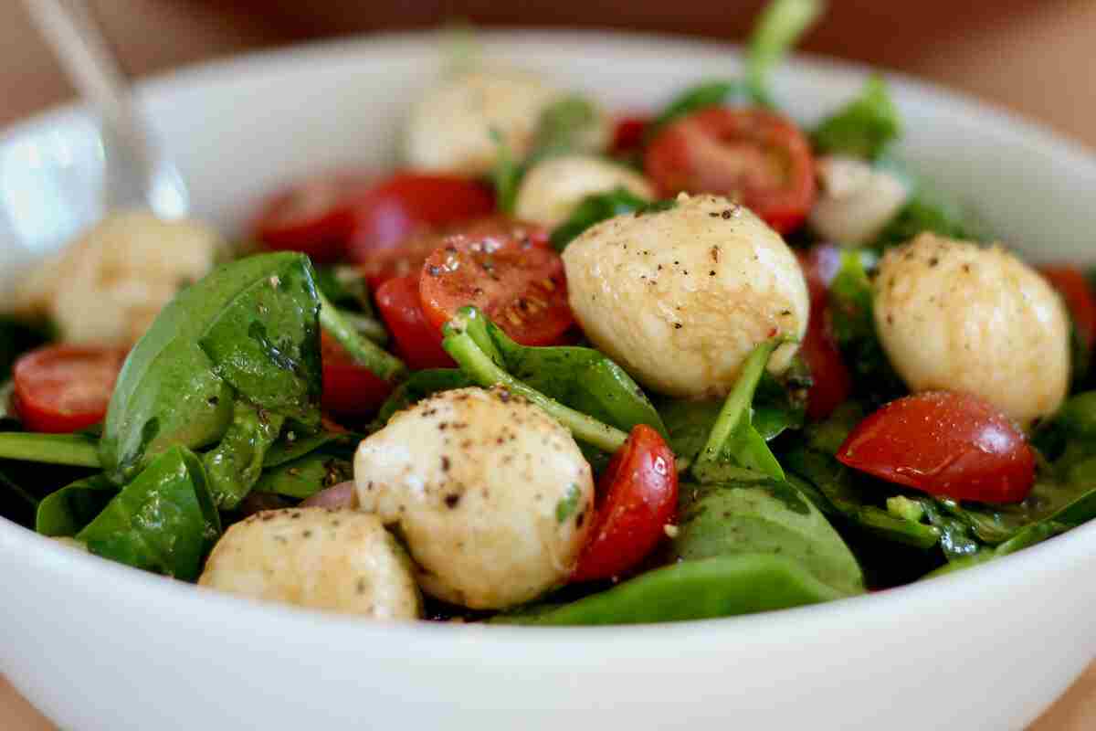 • Bocconcini di mozzarella conditi con pesto di basilico fatto in casa e pomodori secchi