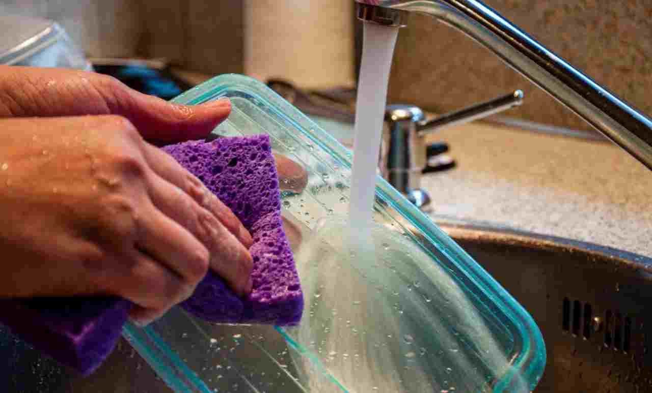 È un bel trucco: toglie il grasso di tanti giorni dai contenitori in un secondo