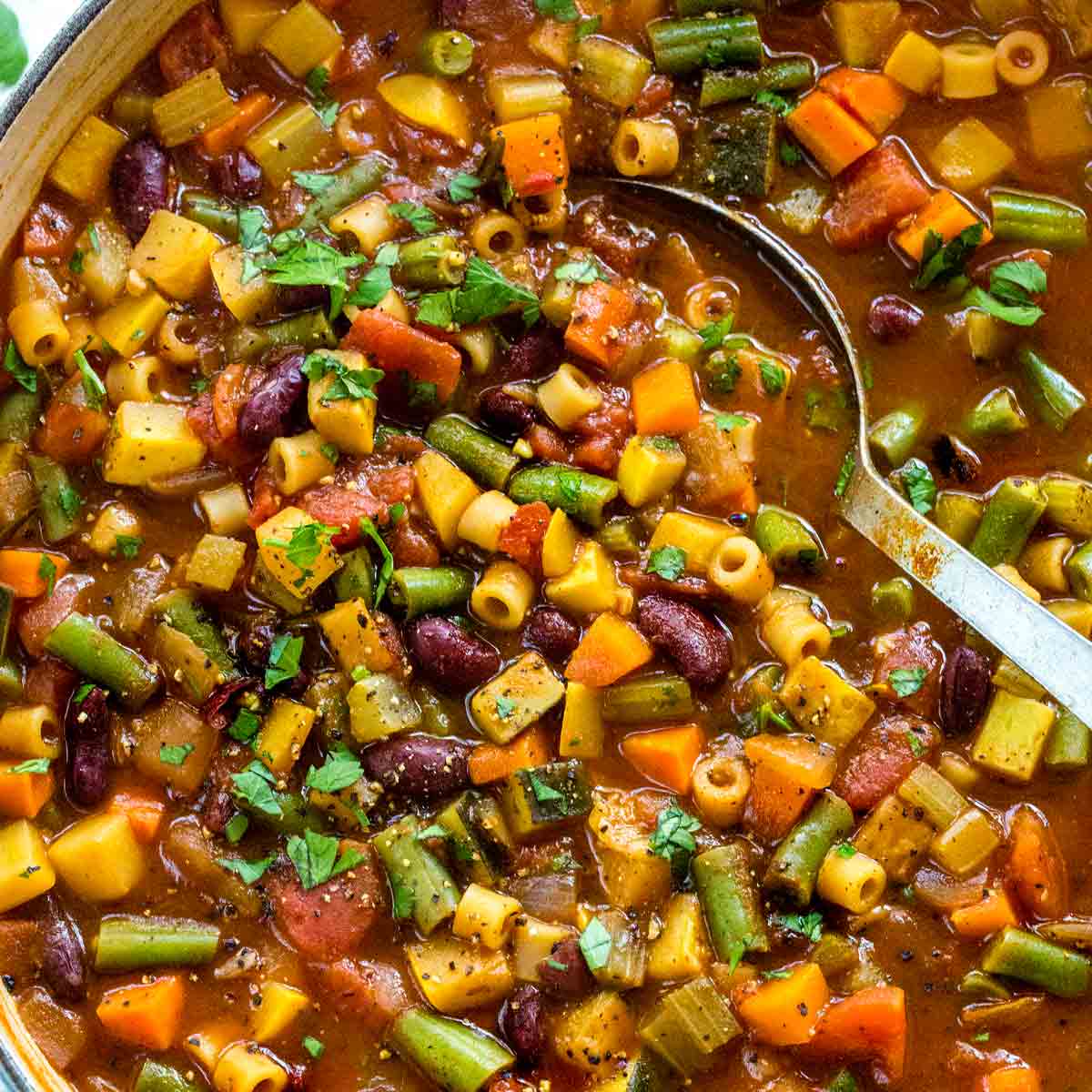 There are many different varieties of minestrone, each one varying according to regional customs. I’ll allow you to substitute a stock cube for home made stock in this recipe, but only if you really have to!