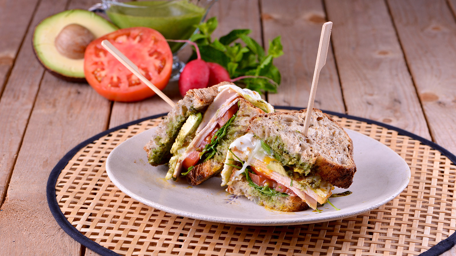 - Questa opzione include due fette di pane integrale, alcune foglie di spinaci, fette di pomodoro, fette di tacchino e alcune fette di avocado maturo. È una ricetta molto facile, ma equilibrata nei nutrienti.