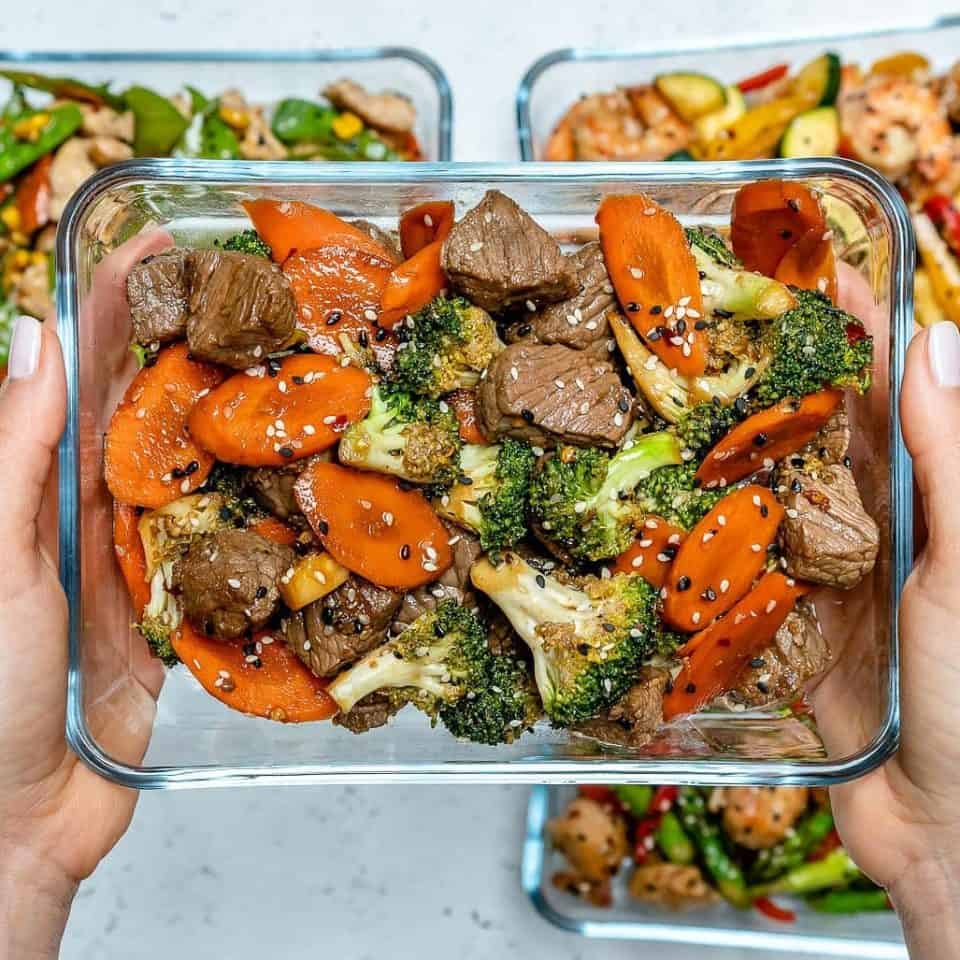 - Per 2 o 3 porzioni. In una piccola ciotola dovresti mescolare tutti gli ingredienti per la salsa, quindi scaldare l’olio in una padella capiente o in un wok a fuoco medio-alto. Aggiungere la carne e mescolare di tanto in tanto fino a cottura ultimata, aggiungere le verdure e cuocere per altri 3-4 minuti. Versare sopra la salsa prima di consumare. Puoi accompagnare con riso integrale, riso al cavolfiore o quinoa.