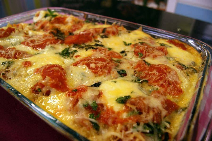 - In una ciotola mescolate il concentrato di pomodoro con sale, origano e olio. Mettere un po’ di questo sugo sul fondo di una teglia media refrattaria e intercalare strati di pasta, sugo di pomodoro, baccalà e formaggio, terminando con pasta e sugo e parmigiano grattugiato.