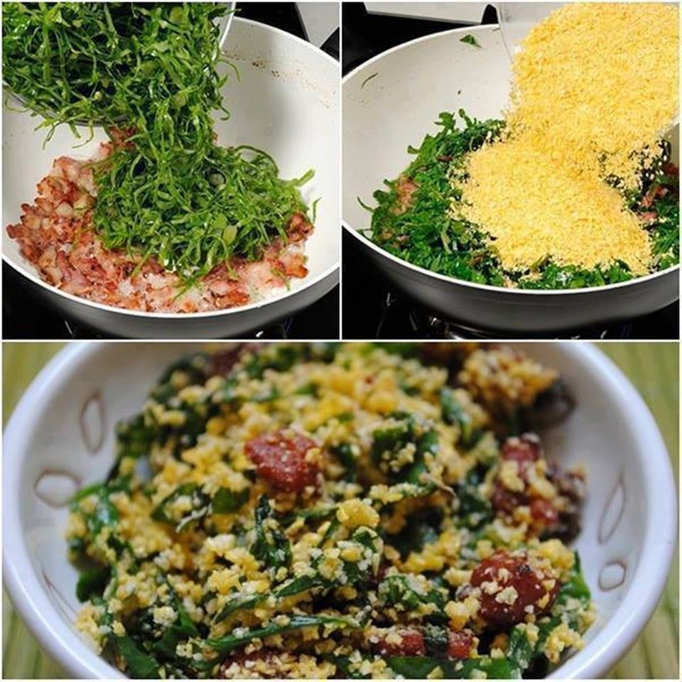 - Aggiungere il cavolo e l’acqua e far rosolare come al solito, prima di asciugare completamente l’acqua, aggiungere gradualmente le briciole e mescolare bene per incorporare bene le briciole al cavolo.