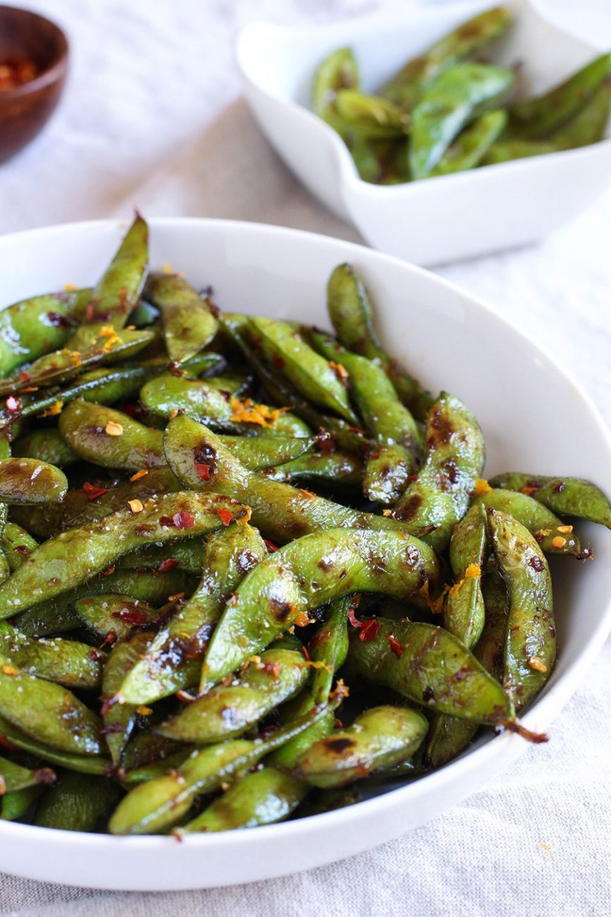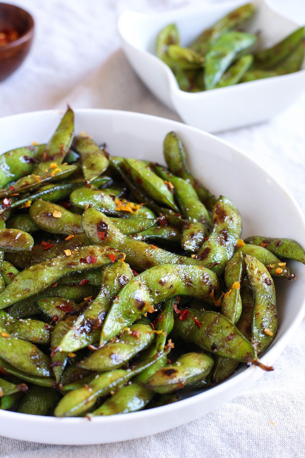 - Coprire l’edamame e portare a ebollizione, quindi passare attraverso l’acqua fredda. Il passaggio successivo consiste nel soffriggere l’aglio arrotolato, il pepe di Caienna, l’edamame e la salsa di soia in un wok con olio d’oliva. Alzate la fiamma, aggiungete il sesamo e girate per qualche secondo per servire.