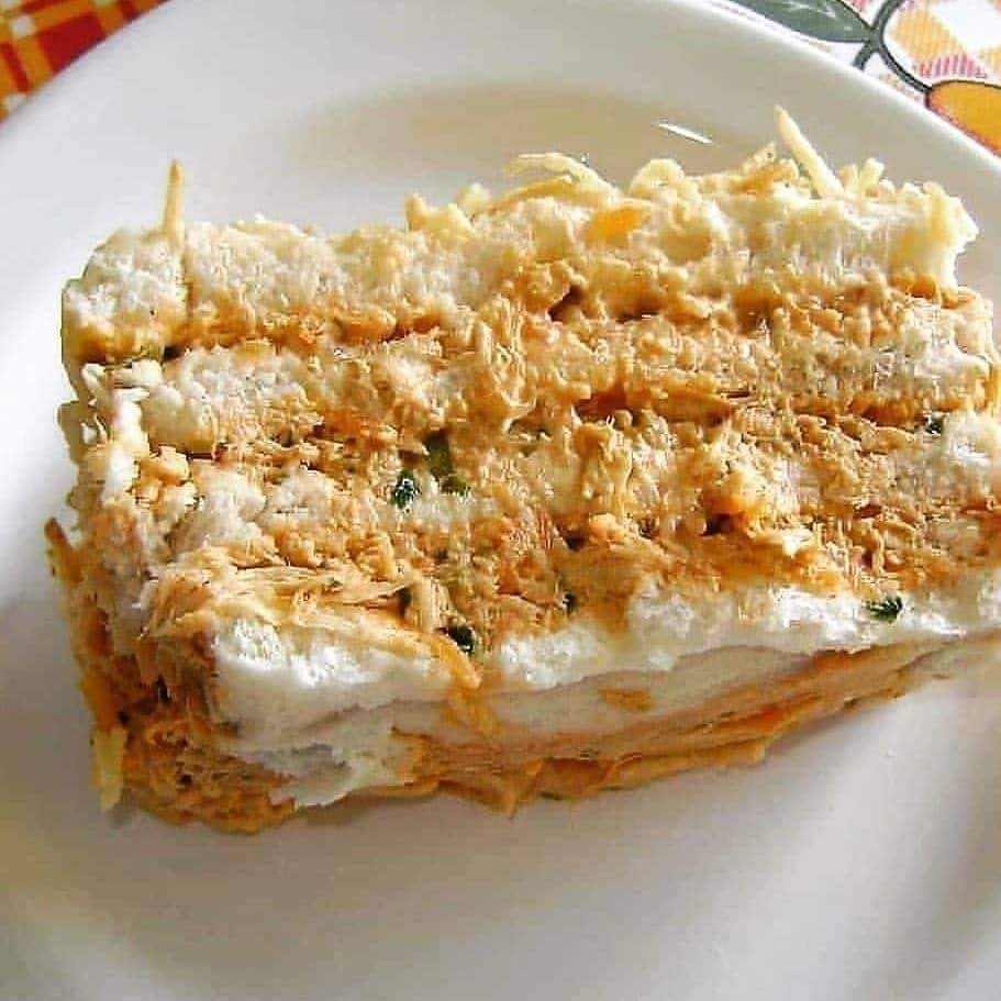 - Dopo aver seguito tutti questi procedimenti assemblate la torta di pollo. Mettetela in frigo per un paio di ore finché non si rassoda e poi potete gustarla.
