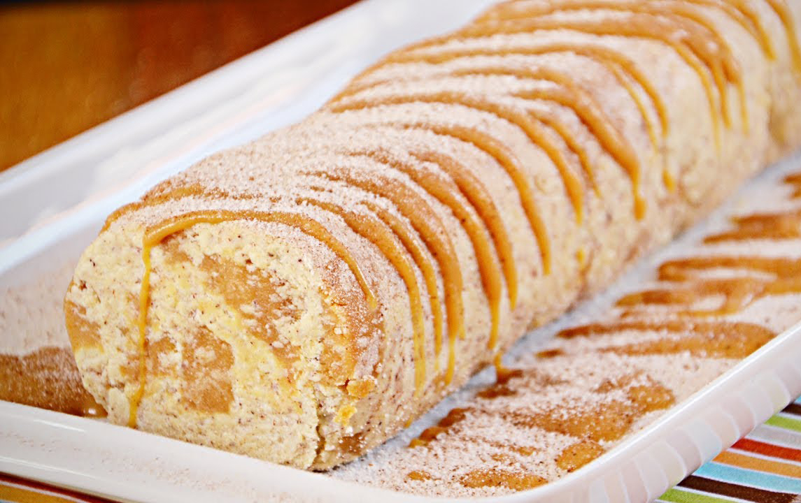 - Una volta arrotolato, ricoprite con le caramelle già separate e spolverizzate con la cannella in polvere.