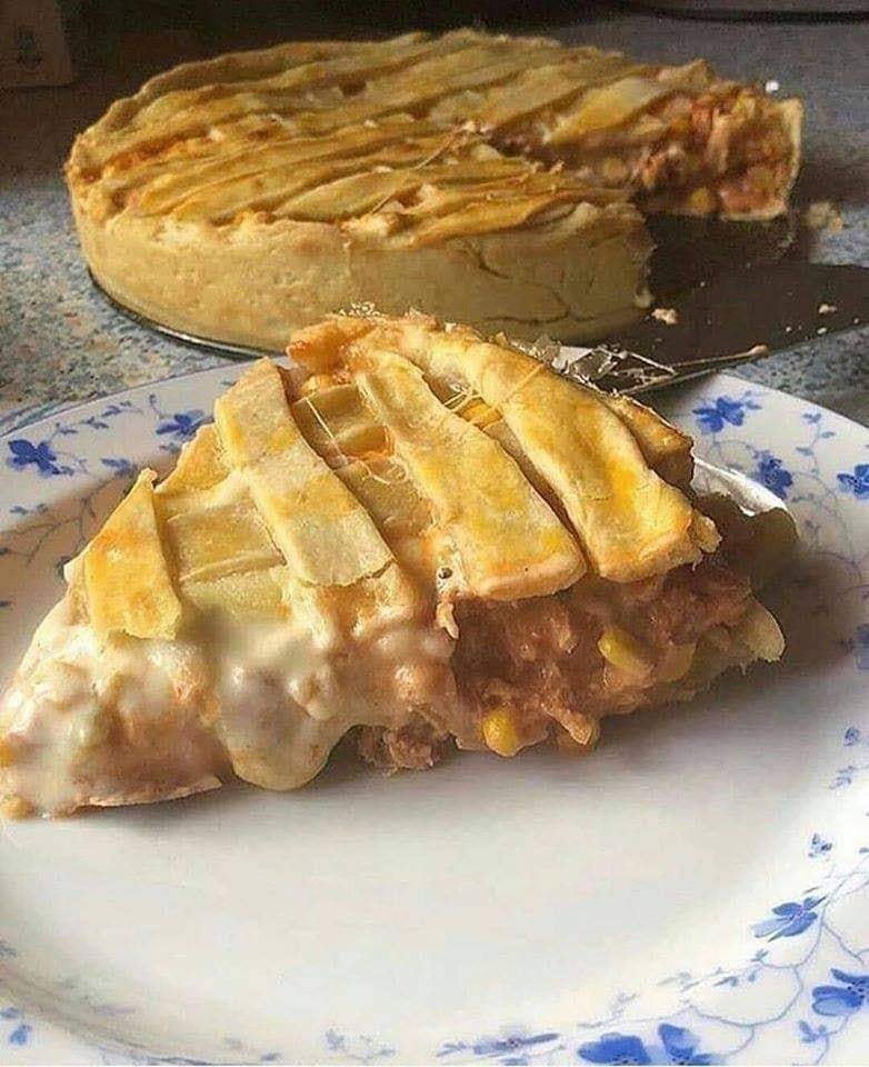 - Dopo aver seguito tutti questi procedimenti assemblate la torta di pollo. Mettetela in frigo per un paio di ore finché non si rassoda e poi potete gustarla.