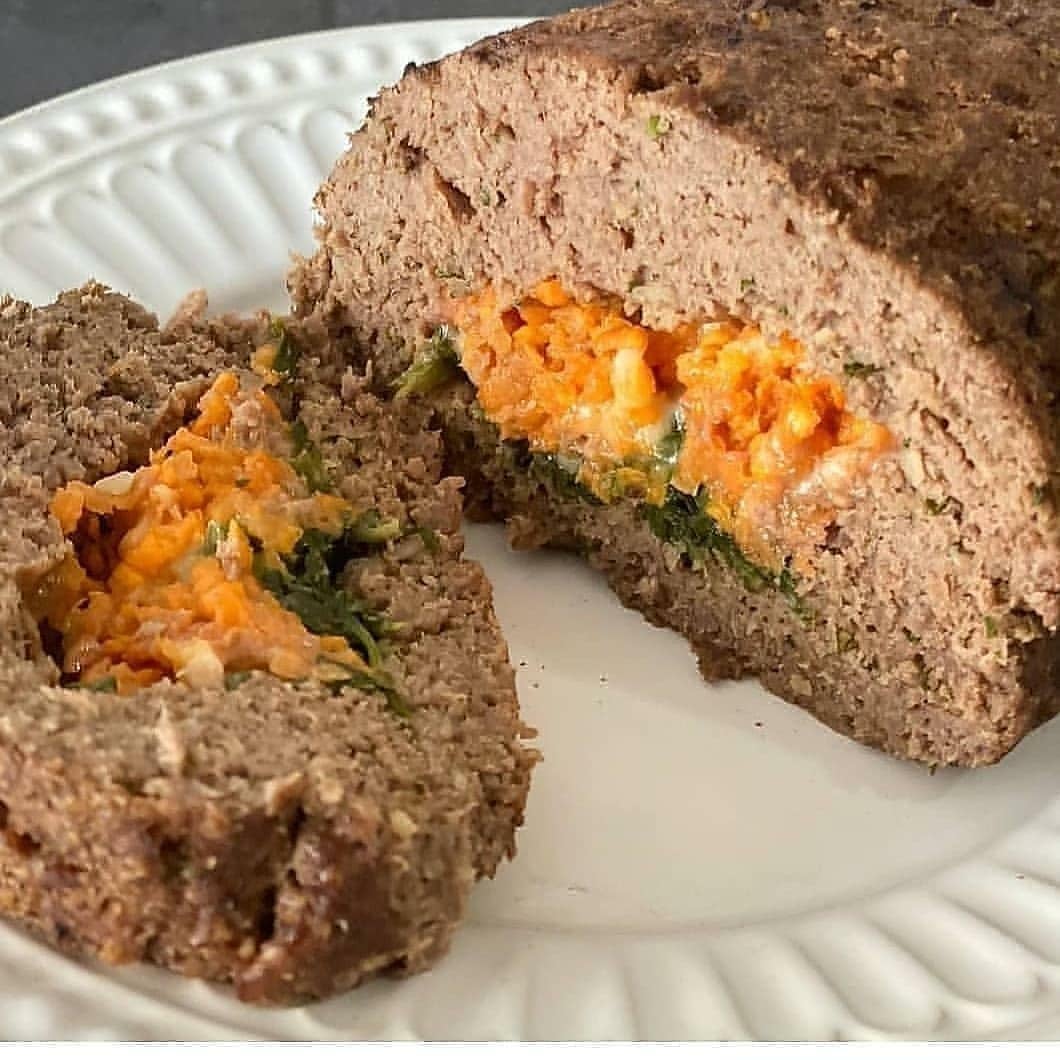 - Distribuire il ripieno, adagiare lo strato di formaggio, gli spinaci e poi la carota.