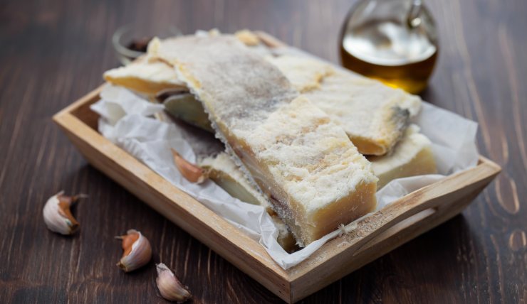 Iniziate mettendo il baccalà in ammollo in una ciotola d’acqua fredda per 2-3 giorni, cambiando l’acqua ogni 4 ore. Una volta che il pesce sarà pronto, eliminate parte della pelle e apritelo per rimuovere la lisca centrale e le spine, quindi tagliatelo a pezzi.