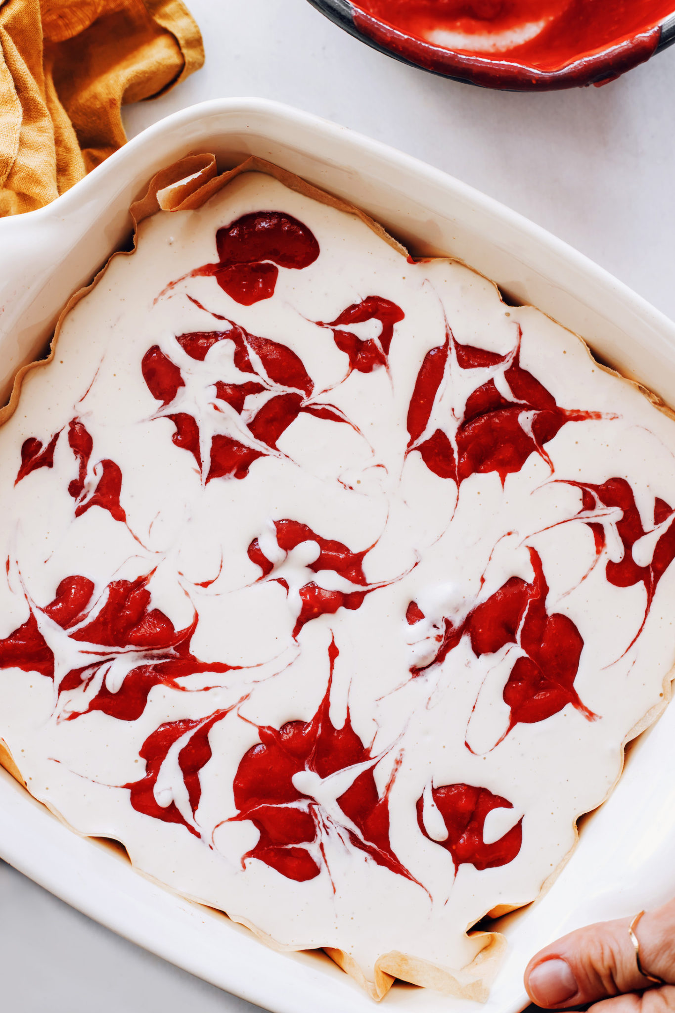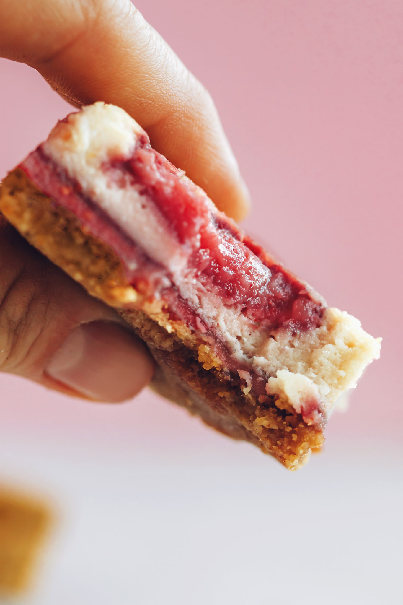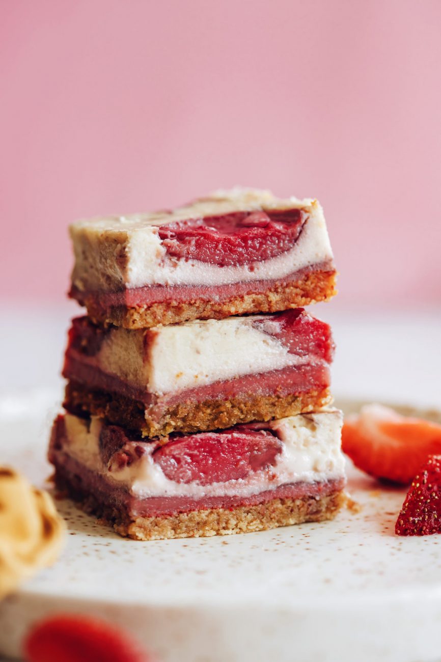 • Barrette di cheesecake alla fragola (Vegan + GF)