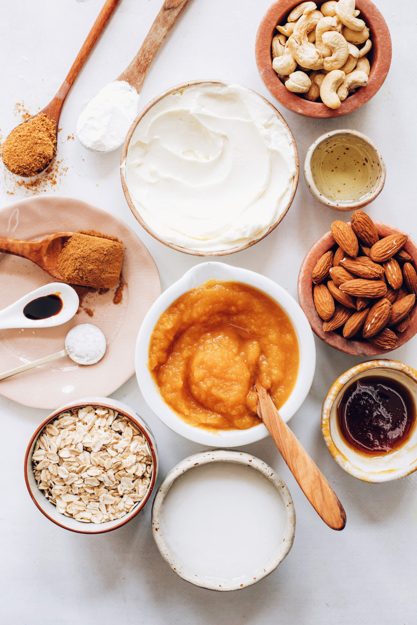 Barrette di cheesecake cremose, sognanti e decadenti infuse con spezie di zucca. A base vegetale, senza glutine e basta 1 frullatore!