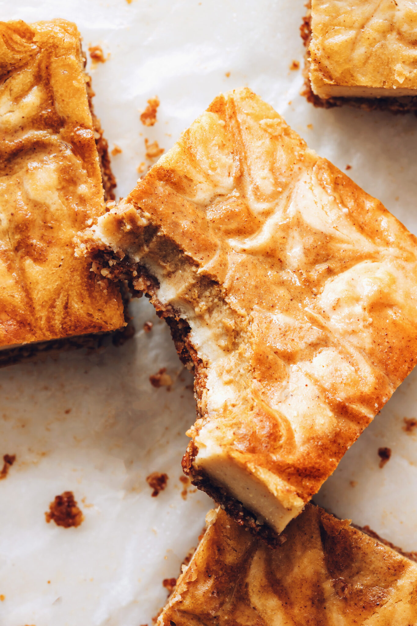 Barrette di cheesecake alla zucca con vortice (Vegane + Senza glutine)