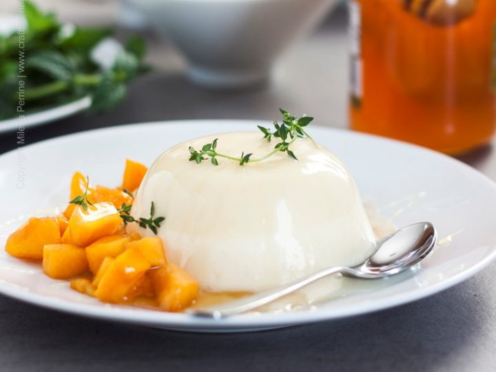 Servire i piccoli budini mono porzione su uno specchio di salsa profiterole guarnito con uno spumino di panna montata e lingue di gatto.