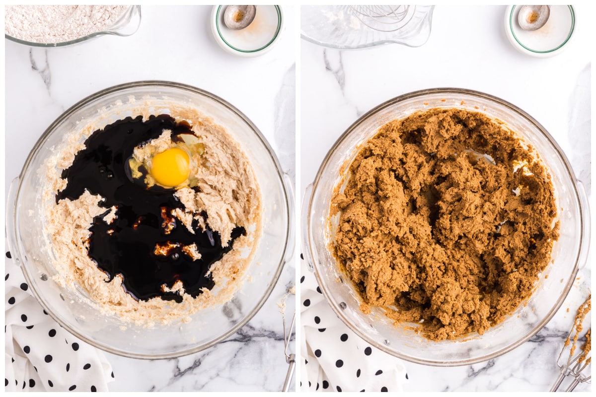- Aggiungere la melassa, l’uovo e la vaniglia. Mescolare solo fino a quando non sarà ben incorporato.