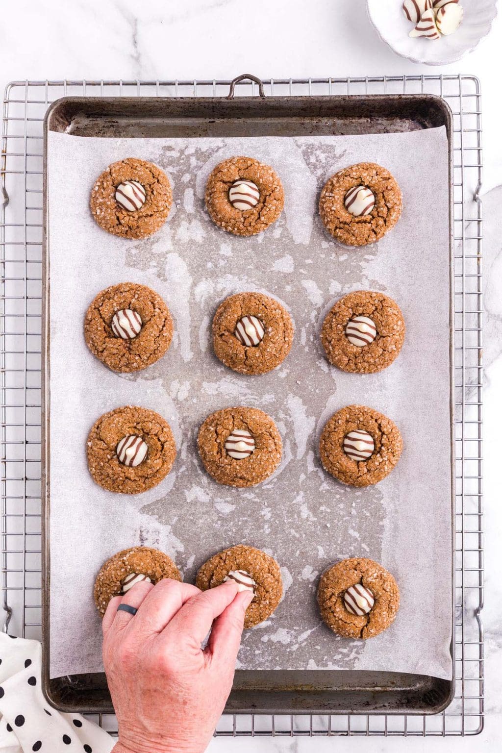 - Premi un bacio Hershey al centro di ogni biscotto.