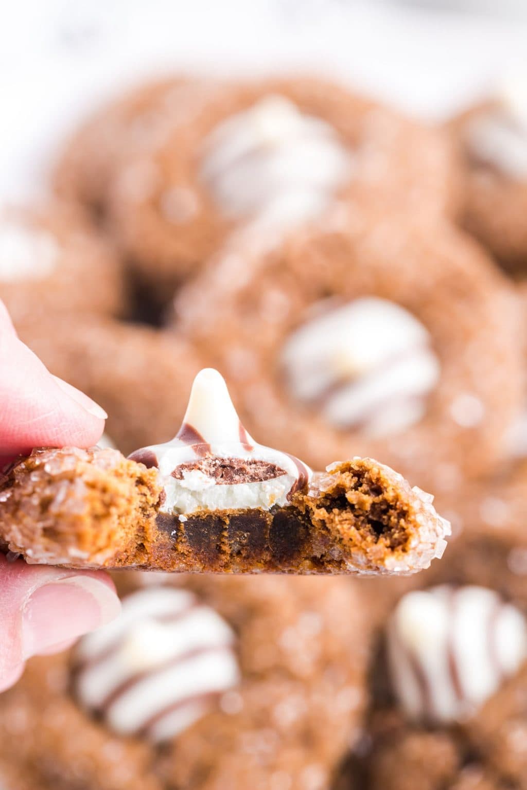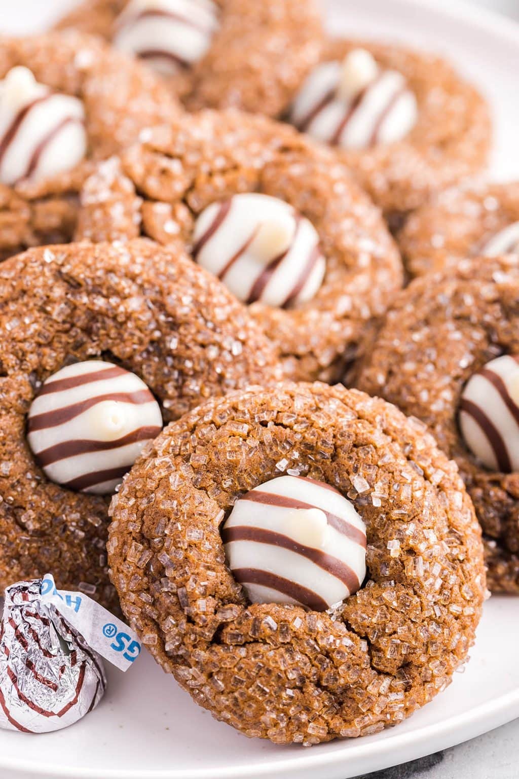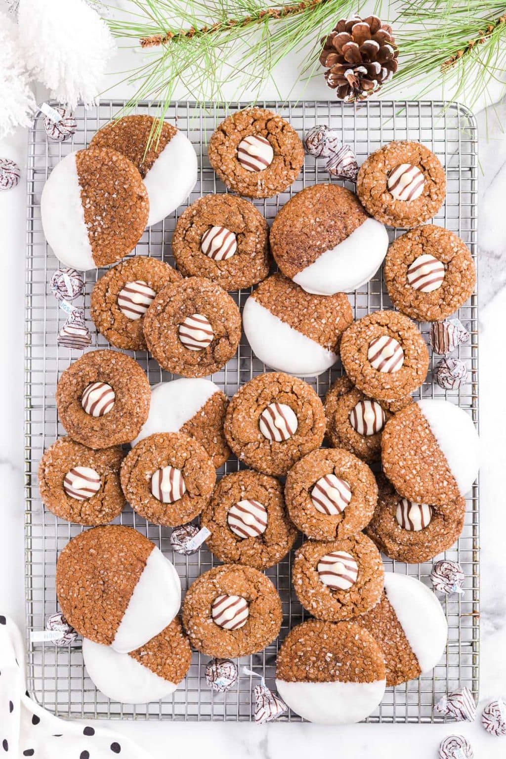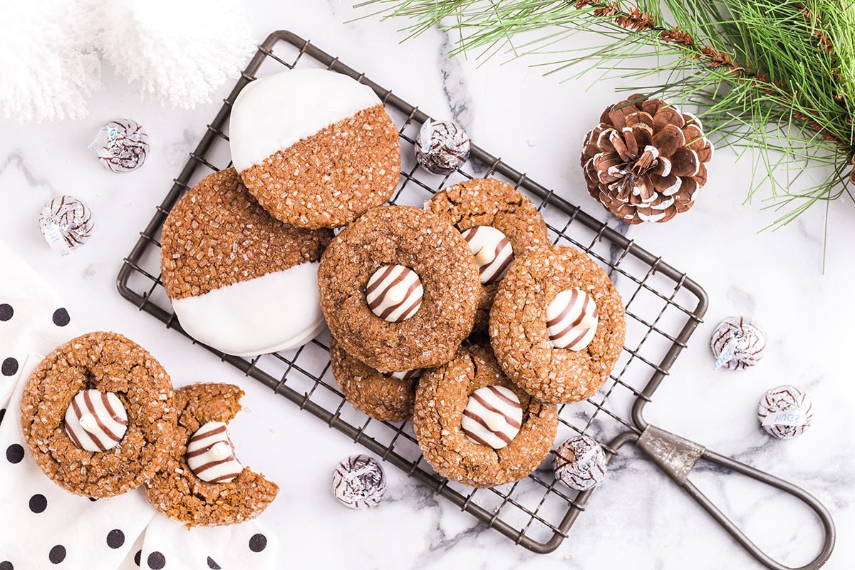I biscotti bacio di pan di zenzero combinano la piccantezza del sapore più popolare del periodo natalizio con la dolcezza degli abbracci di Hershey per creare il biscotto natalizio più semplice e imperdibile.