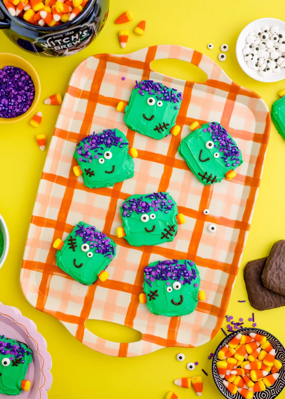 Per questa ricetta puoi utilizzare praticamente qualsiasi altro biscotto a tua scelta. Gli Oreo con ripieno doppio sono un’ottima scelta e, se hai dei biscotti base con gocce di cioccolato, puoi usarli anche tu! Ricorda che la forma della testa di Frankenstein sarà ovviamente diversa in base al tipo di biscotto che stai raccogliendo, ma è questo che lo rende così divertente e creativo.