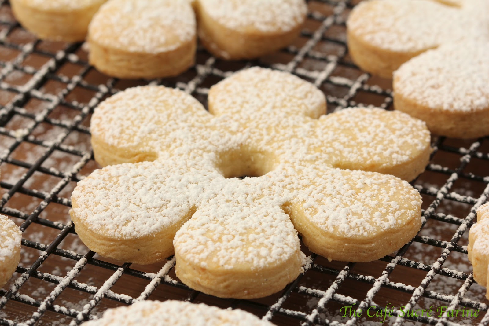 Impastate rapidamente tutti gli ingredienti per la frolla e con il matterello stendetela allo spessore di 5 mm. Con il taglia pasta a fiore incidete i biscotti e con il taglia pasta tondo incidere il centro dei fiori. Adagiate i biscotti (fiori e tondi) su tre placche foderate con carta da forno e rassodateli in frigo per 2 ore. Infornateli a 180°C per 15 minuti. Quando i biscotti saranno cotti, sfornateli e sformateli sulla gratella a raffreddare.