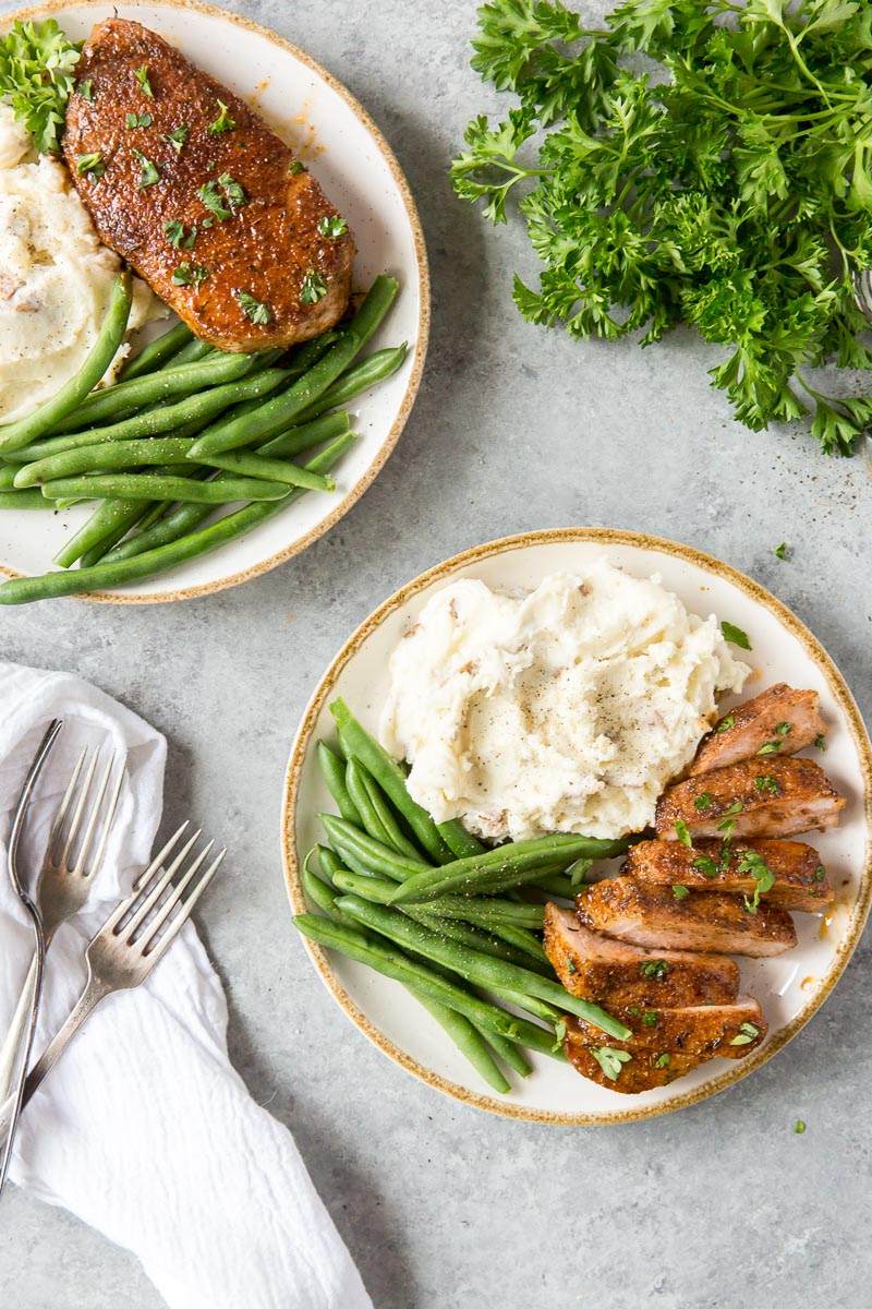 - Puoi sostituire il mio condimento per maiale con i condimenti individuali in questa ricetta. Mi piace fare una doppia quantità di condimento di maiale in modo da averlo a portata di mano per pasti veloci. Usa circa 3 cucchiai di condimento di maiale per 4 braciole di maiale.