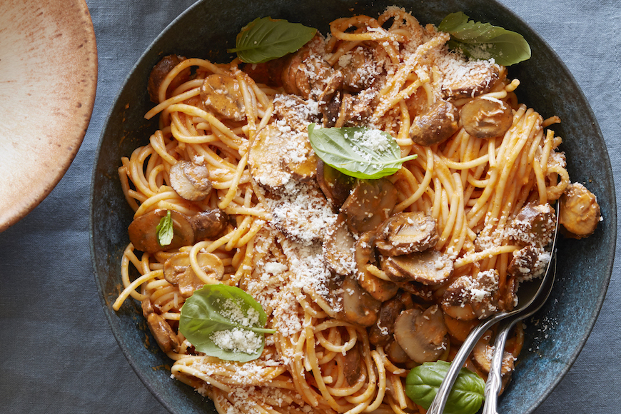 Pulite bene con un pennellino i funghi chiodini, o altri carnosi. In un tegame scaldate l’olio con due spicchi di aglio tritati o affettati, unite i funghi. Cuocete a fuoco lento, senza friggere, aggiustando di sale e pepe e, se occorre, uno o due cucchiai di acqua. Lessate in abbondante acqua salata la pasta e scolatela al dente. Mettete in una zuppiera e unite i funghi con il loro olio, e altro olio extravergine di oliva crudo e una manciata di prezzemolo tritato. Tenete in caldo fino al momento di condire la pasta nella zuppiera. Il soffritto può essere preparato con olio e cipolla tritata, anziché aglio.Poi unite i funghi affettati, sale e pepe, prezzemolo e qual- che cucchiaio di polpa di pomodoro.
