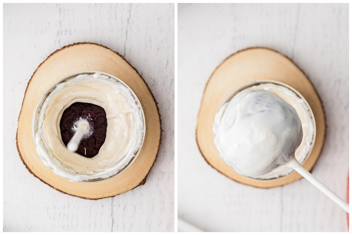 - Uno alla volta, immergi ogni cake pop nella copertura al cioccolato.