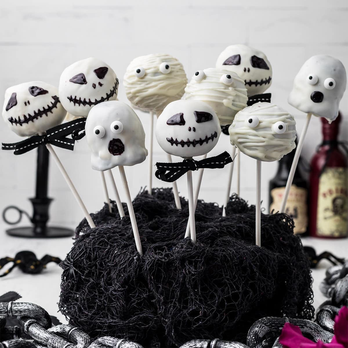 Questi cake pops di Halloween fanno prendere vita a mummie, Jack Skellington e fantasmi sotto forma di cibo: sono divertenti da decorare e deliziosi da divorare con pochi semplici “trucchi” che rendono questi “dolci” particolarmente facili da realizzare!