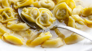 In una teglia cuocete con poco burro la carne. Tritatela poi insieme con il prosciutto crudo e con la mortadella; amalgamate il tutto con le uova, il parmigiano grattugiato, un pizzico di noce moscata e, infine, il sale e il pepe. Preparate la sfoglia e tiratela in sfoglie sottili che ritaglierete in tanti quadratini. Sopra ogni quadratino di pasta distribuite un po’ del ripieno. Chiudeteli a triangolo, facendoli girare intorno a un dito, attaccando le due estremità insieme e rovesciandone esternamente il lembo. A questo punto cuocete i cappelletti nel brodo di carne e servire con una bella spolverata di parmigiano.