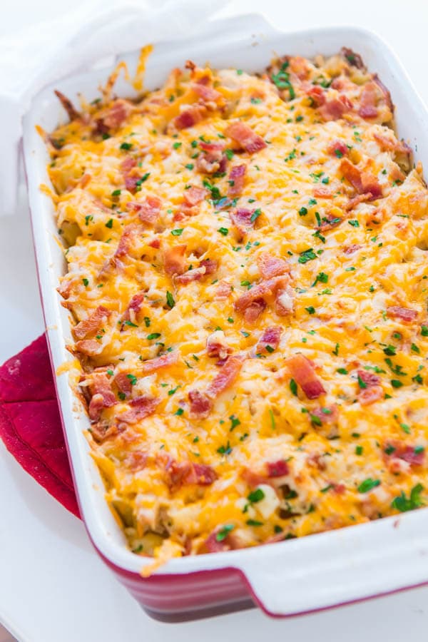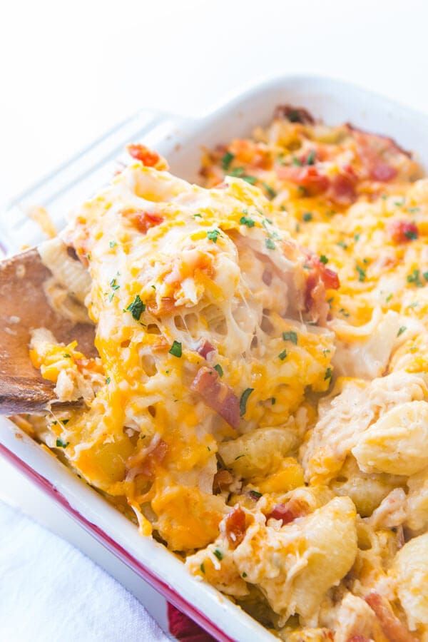 Questa idea per una cena facile e veloce è perfetta per tutto l’anno. La casseruola ranch di pollo al formaggio e pancetta è piena di pasta e anche i bambini lo adorano!