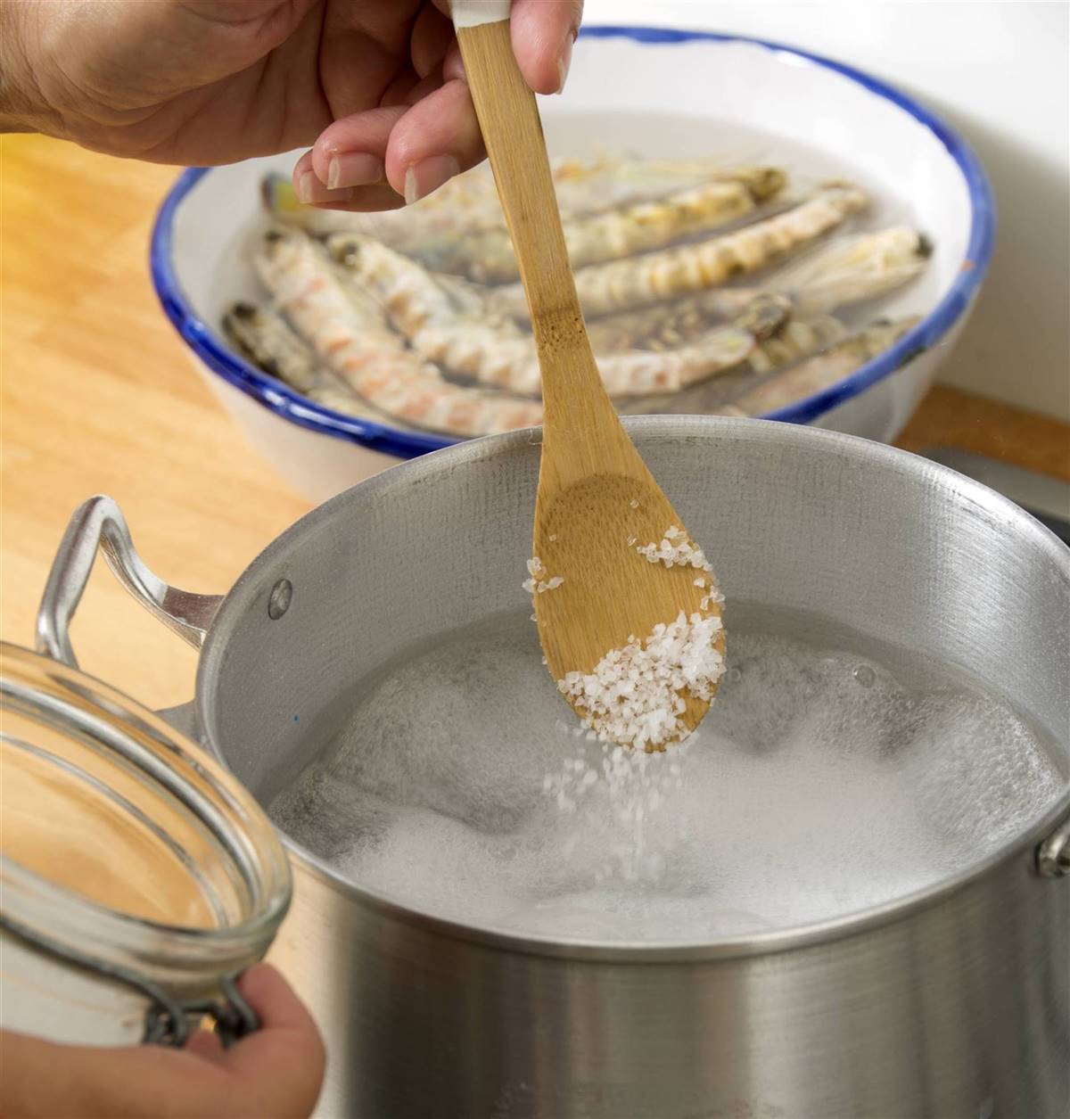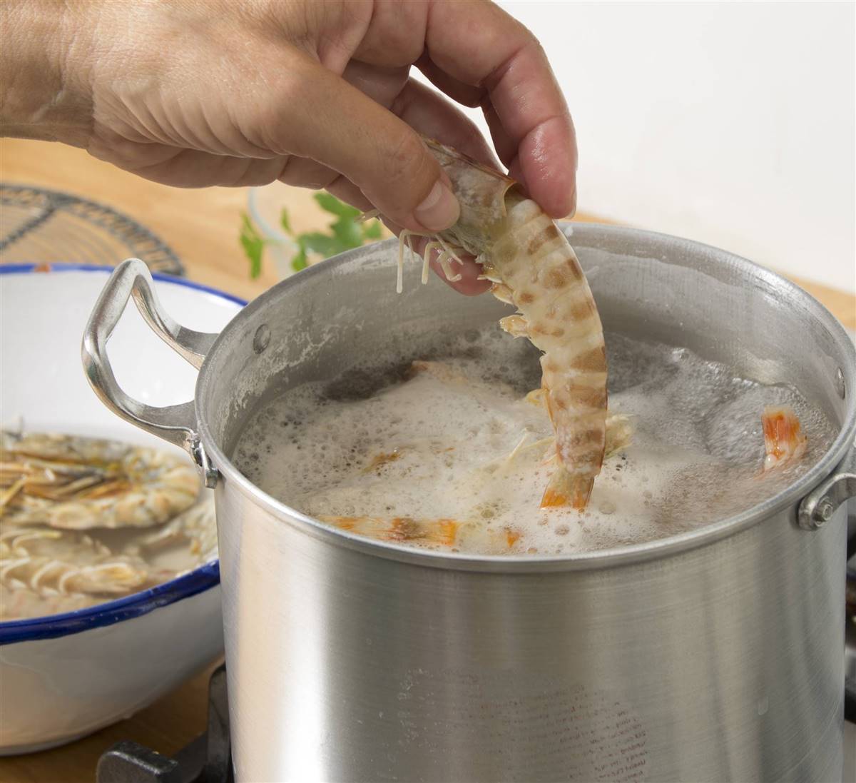 - Passaggio 2. Mentre i gamberi si stanno acclimatando, metti una casseruola con dell’acqua sul fuoco. Aggiungere 3 litri di acqua per ogni chilo di gamberi. Quando inizia a bollire, salare e poi i gamberi surgelati.