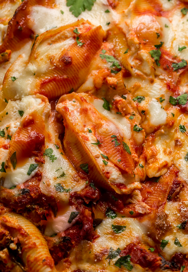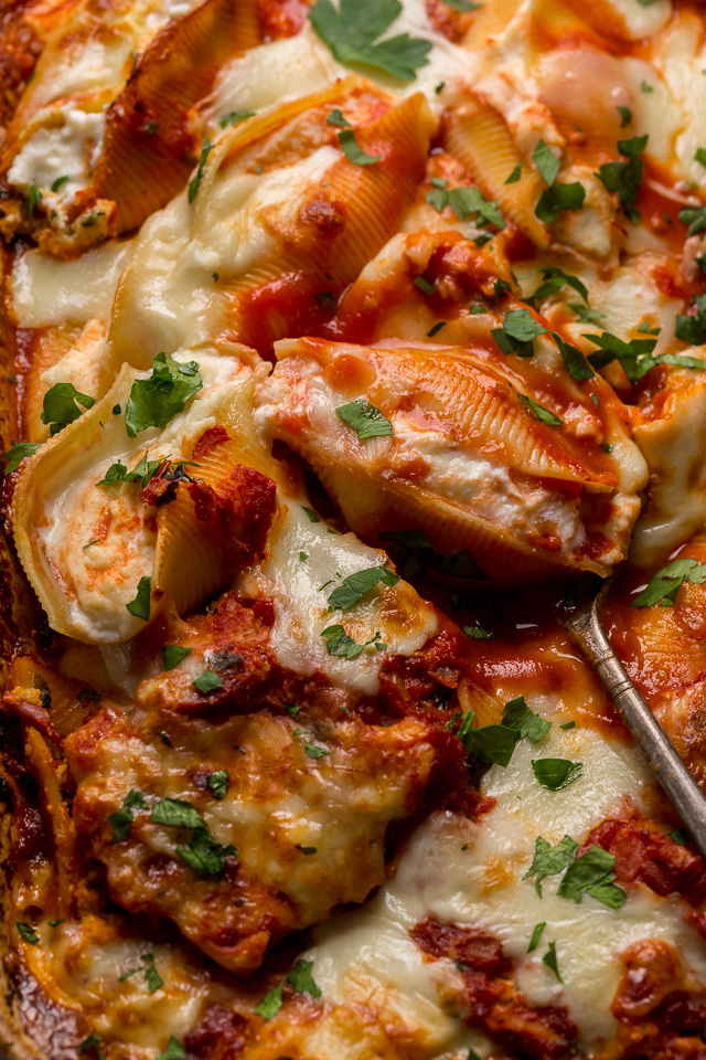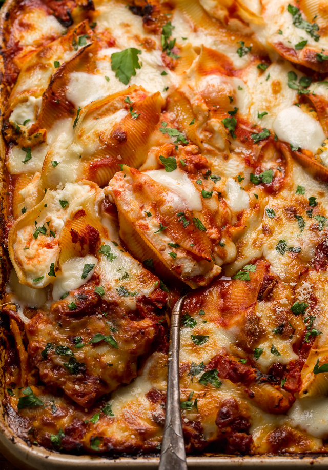 Questi conchiglie ripiene classiche da urlo sono al meglio cremose, appiccicose e ricche di carboidrati! Questa ricetta amata dalla famiglia presenta conchiglie cotte alla perfezione, salsa di pomodoro saporita e il ripieno di ricotta più delizioso! Sicuramente diventerai uno dei tuoi primi piatti di pasta preferiti!