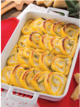 Sbattete le uova senza montarle, poi unite la farina e, sempre mescolando, il latte. Pepate, aromatizzate con la salvia tritata e salate. Proteggete una placca con carta da forno, versate la pastella e infornate a 175°C per 25 minuti (verificate la cottura: la crespella non dovrà diventare troppo secca). Per la farcia: lavorate a crema la ricotta con la buccia grattugiata dei limoni. Unite il parmigiano e, se la massa risulta troppo soda, diluitela con un goccio di panna. Sformate la crespella sul piano di lavoro e spalmatela con la farcia, quindi arrotolatela. Avvolgetela con la carta da forno e ponete il rotolo in frigo per 60 minuti. Eliminate la carta, tagliate le crespelline alte cm 2 circa e disponetele in una teglia unta. A parte in una casseruola sciogliete il burro e aromatizzatelo con la salvia. Cuocete a fiamma bassissima per 5 minuti. Pennellate le crespelle con il burro alla salvia, spolverizzatele con il parmigiano, poi infornate a 185°C per 20/25 minuti.