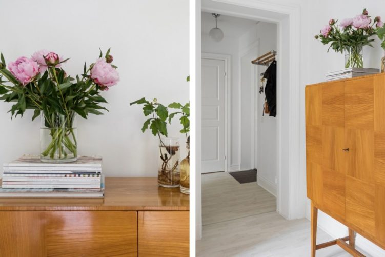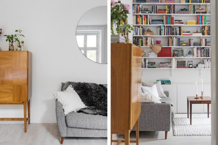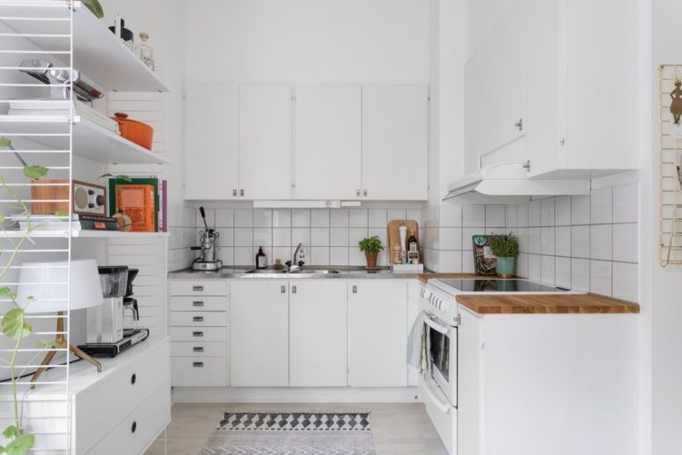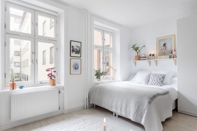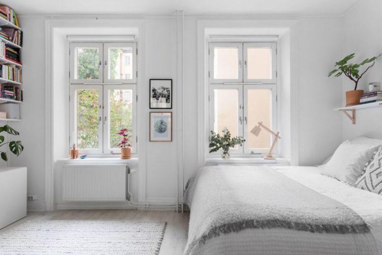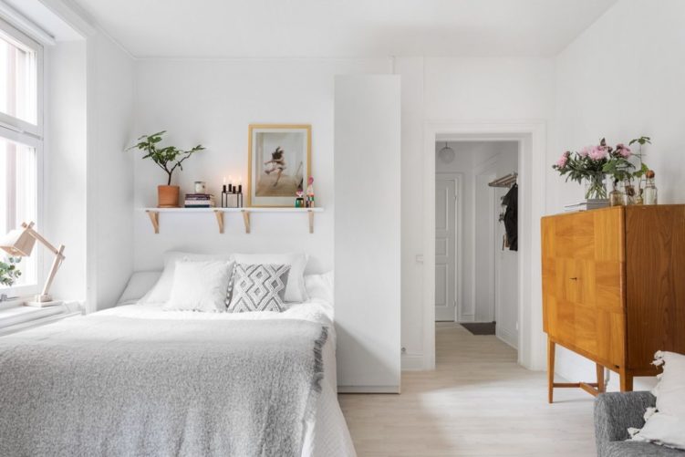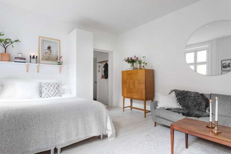 Un monolocale con una distribuzione pratica con tutto il necessario per vivere comodamente e una decorazione prettamente nordica basata sull’uso di colori neutri e punti di contrasto attraverso oggetti e piante colorati.