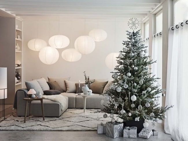 Il bianco è un colore radioso luminoso e pulito che porta luce e freschezza in ogni ambiente. Una decorazione natalizia vuota è sempre un successo. Se aggiungiamo anche il colore argento, otterremo una decorazione elegante con un’aria festosa così favorevole a celebrare queste feste accattivanti.