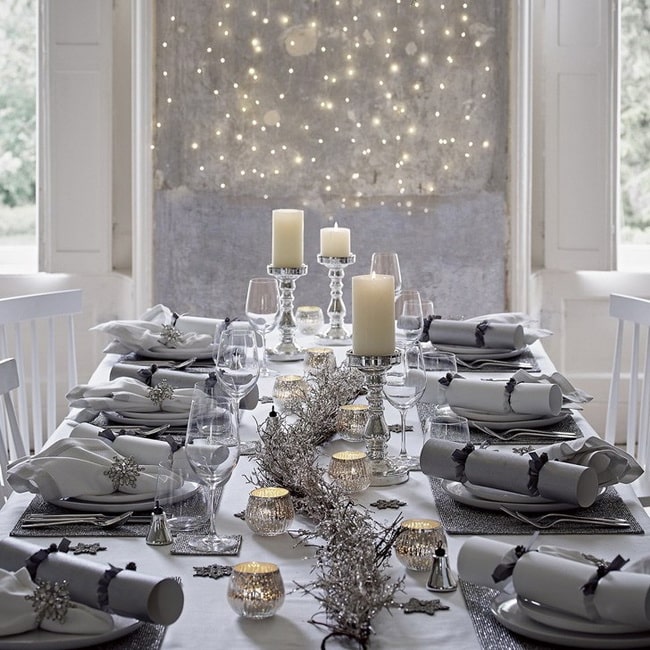 Puoi anche aggiungere ghirlande leggere e piccole stelle bianche alla decorazione della tavola.