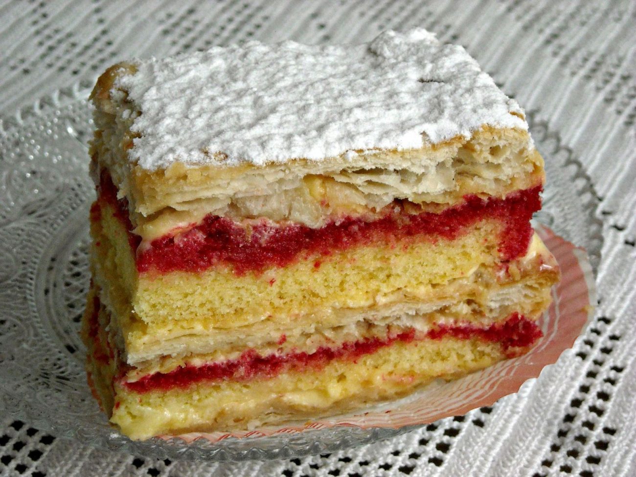 Tagliate due rettangoli di pasta sfoglia dalla larghezza di 15cm e 24cm di lunghezza, spolverateli con zucchero semolato e fate cuocere nel forno preriscaldato fino a quando sono dorati, sfornate i rettangoli e spolverateli con zucchero semolato, fate cuocere per altri 10 – 15 minuti, fate raffreddare. Prendete la crema pasticcera fredda, mischiatela bene e aggiungete la panna montata; componete la diplomatica mettendo uno strato di pasta sfoglia, sul piatto da servire, aggiungete la crema pasticcera e poi delle amarene sgocciolate, mescolate 50ml di sciroppo di amarene con il liquore Maraschino, posate il pan di Spagna sulla crema pasticcera e poi bagnate lo strato di pan di Spagna, con lo sciroppo, fate un altro strato di crema, aggiungete altre Amarene e poi finite con l’ultimo strato di sfoglia; guarnite la diplomatica con ciuffi di crema pasticcera e altre amarene a piacere.