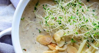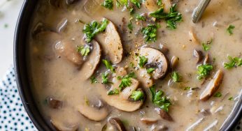 This simple mushroom soup delivers all the taste of wild mushrooms without the price tag! Reconstituted dried porcini are blended…