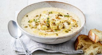 This is a delicious, creamy soup, which goes really well with the crunchy olive pesto. Make sure you get good-quality…