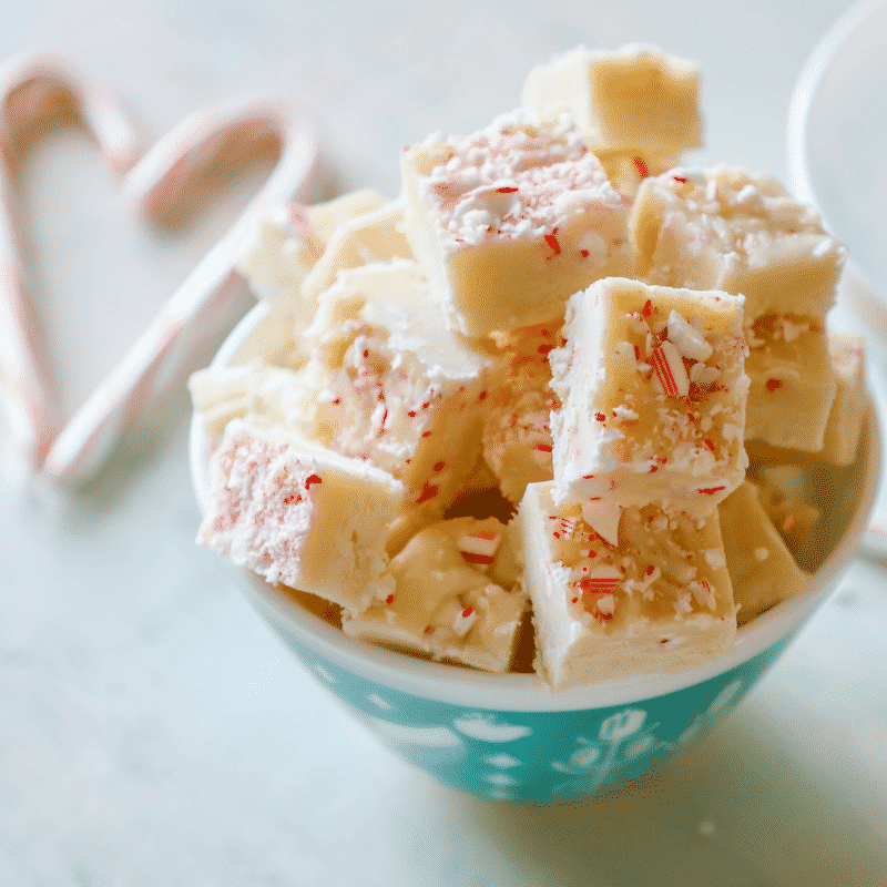 Line a 9×9 inch baking dish with parchment paper and grease it. In a large saucepan, combine the white chocolate chips and sweetened condensed milk. Continue stirring until all of the white chocolate chips have completely melted. Stir in the vanilla extract and the crushed candy canes. Transfer to the prepared baking dish and allow it to cook for about an hour. Place the baking dish in the refrigerator and allow it to set for an additional 3-4 hours.