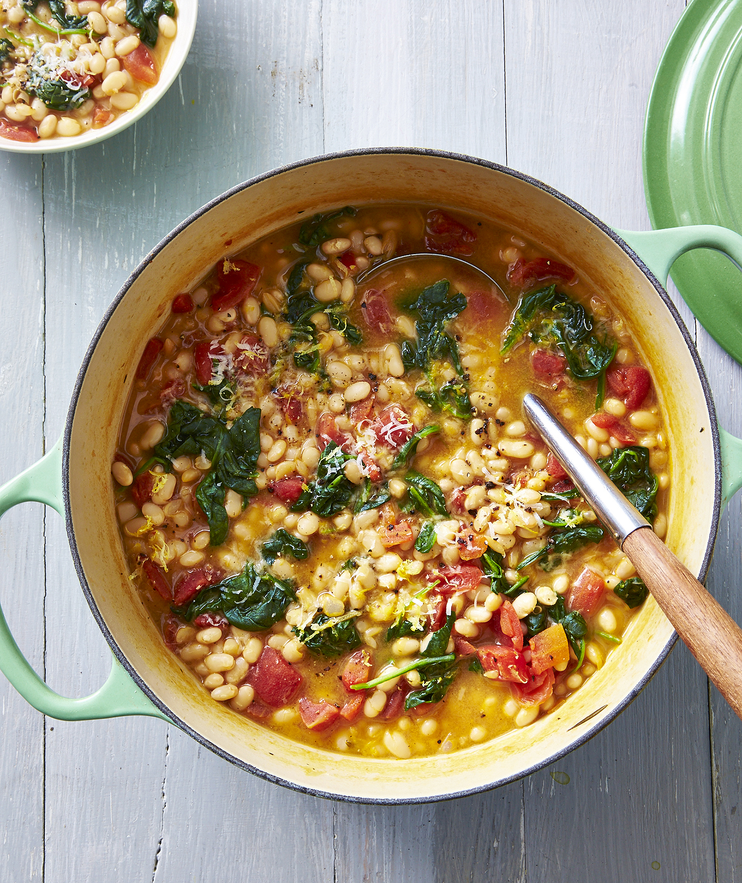 Real Simple Recipes: White Bean Soup Photography Hector Manuel Sanchez; Prop Stylist Thom Driver; Food Stylist Rishon Hanners
