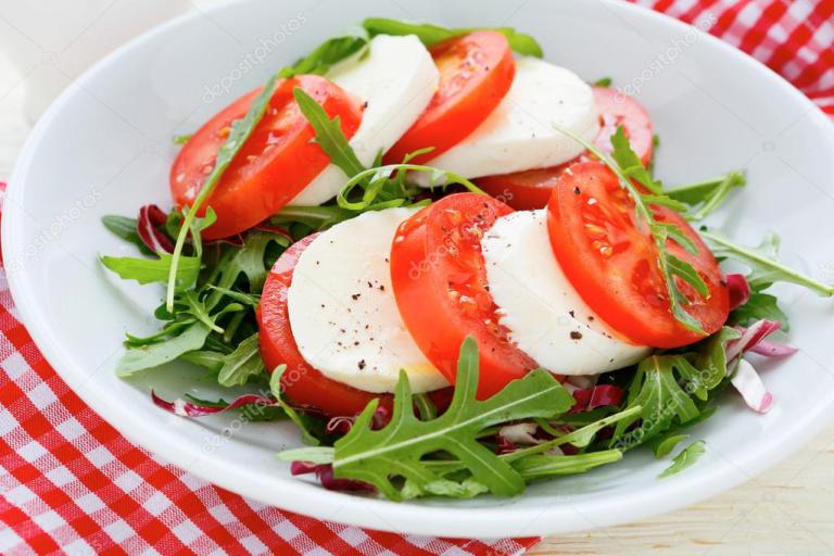 On a plate, arrange the slices of tomato and mozzarella, alternating one after the other and fanning out. Tear the fresh basil over the salad. Sprinkle with salt and drizzle with the best extra virgin olive oil available. Total time is 10 minutes.