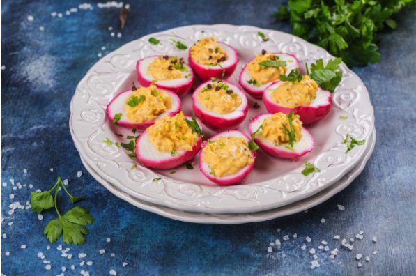 It is a balance between pastel and bold colours to spice up things on the lunch table. Meanwhile, it is easy to assemble and serves well with many main dishes.