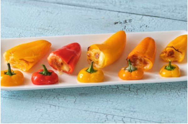 - 8 mini orange bell peppers, halved lengthways and seeds removed