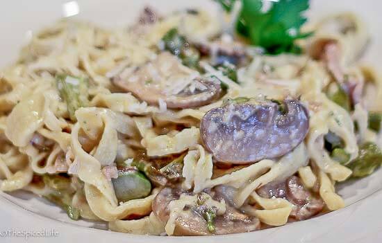 Fettuccine in bianco with white asparagus asiago and cream