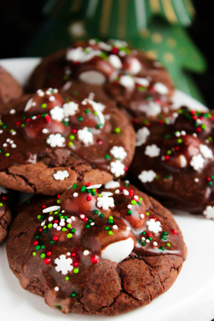 Preheat your oven to 350 degrees F and line two baking sheets with parchment paper. In a large bowl, break up the cookie dough and add the Nutella, cocoa powder, and cinnamon. Beat with an electric mixer until well mixed. Shape the dough into 12 2 inch balls. Flatten the balls and place half of a large marshmallow in the center of each and fold the dough around marshmallow. Place the balls 2 inches apart on the baking sheets and bake for 10-12 minutes. Cool on the pan for 5 minutes then transfer to a rack to cook completely before serving.