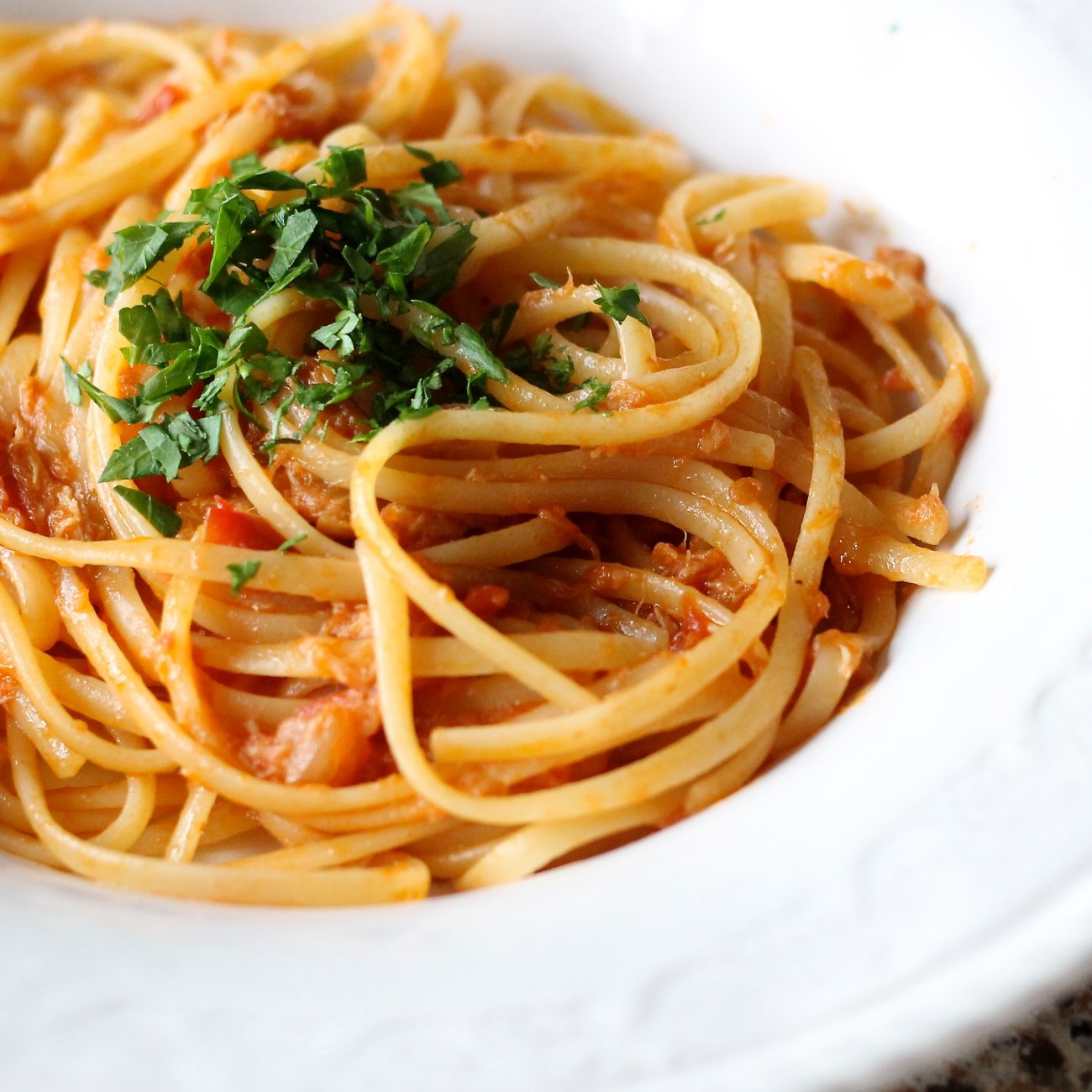 The flat, slightly rounded shape of this pasta particularly suits sauces based on fish. This recipe just goes to show useful it is to keep a tin of tuna in the cupboard.