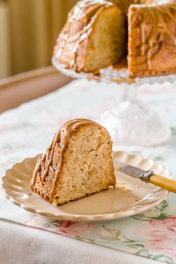 Bundt cake de plátano con salsa de dulce de leche