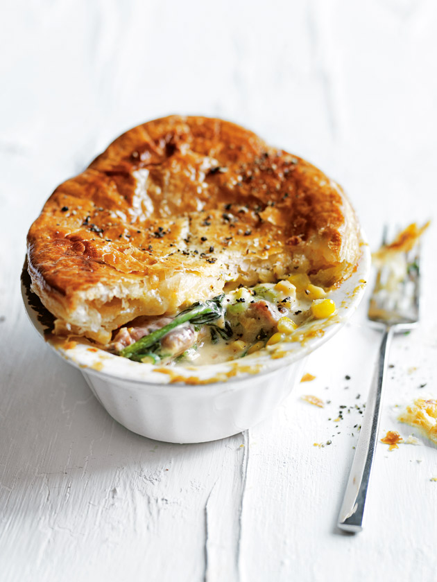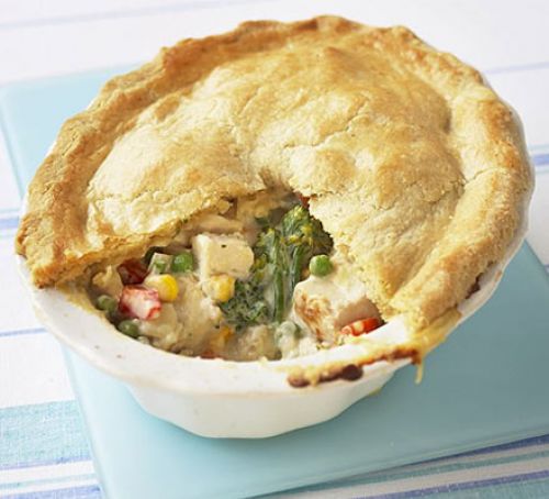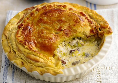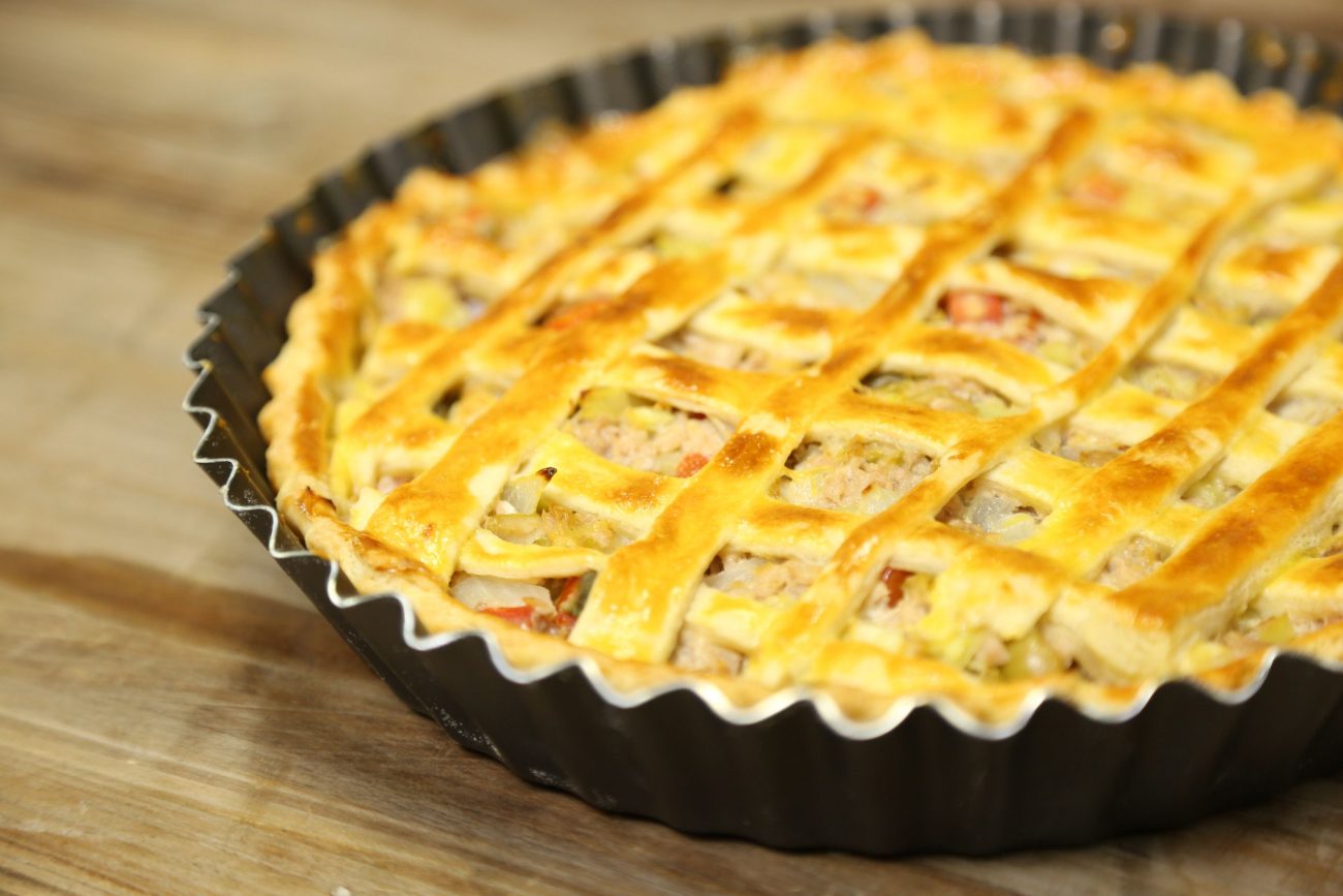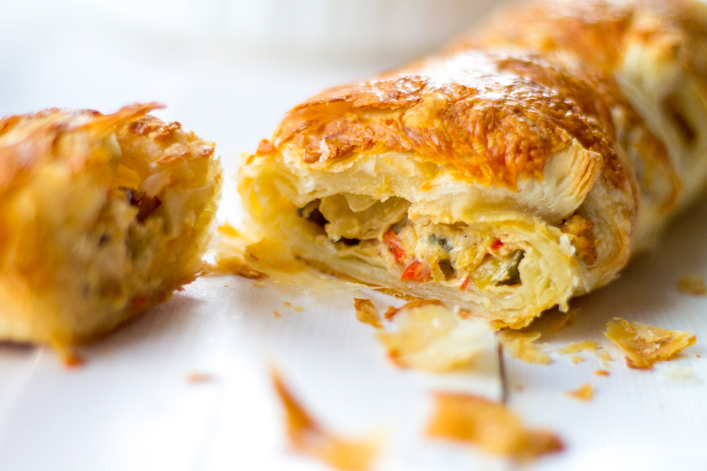 Pastel de hojaldre de pollo con vegetales y champiñones